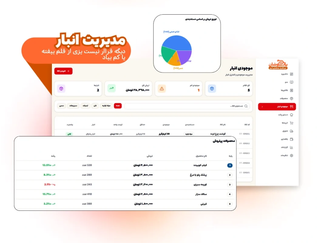 بله، این نرمافزار ویژه کسبوکارهایی مانند رستوران، فستفود، کترینگ و … طراحی شده است؛ شامل امکاناتی مثل صدور فاکتور سریع، داشبورد درآمد و هزینه، مدیریت موجودی انبار و هشدار کمبود کالا میباشد.